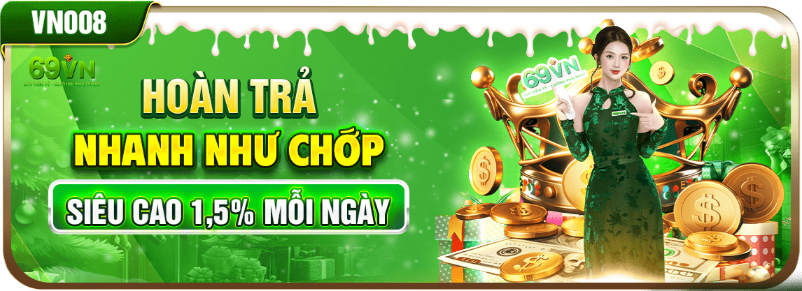 Trang chủ 69vn15 truy cập chính thức trang chủ 69VN đăng ký và tải app miễn phí nhận tiền thưởng miễn phí, nạp đầu tặng lớn đến tới 9999. Hoàn trả nhanh như chớp siêu cao 1,5% mỗi ngày